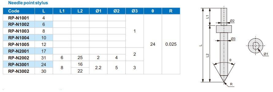 Jehlové měřicí hroty série RP jsou určeny pro přesné měření drsnosti povrchu a kontur ve spojení s přístroji pro měření drsnosti a tvaru.