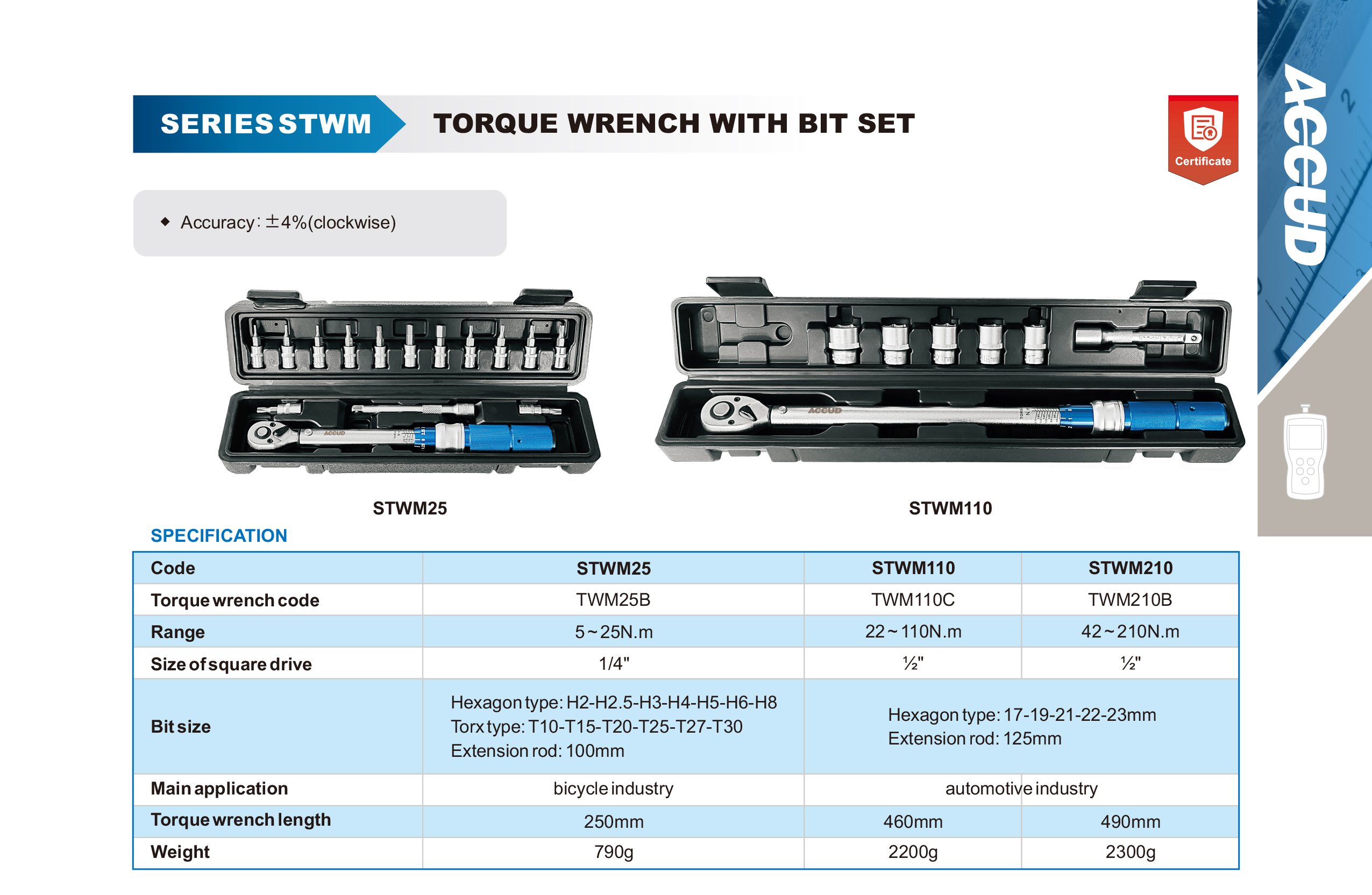 ACCUD STWM25 momentový klíč se sadou bitů rozsah 5-25N.m