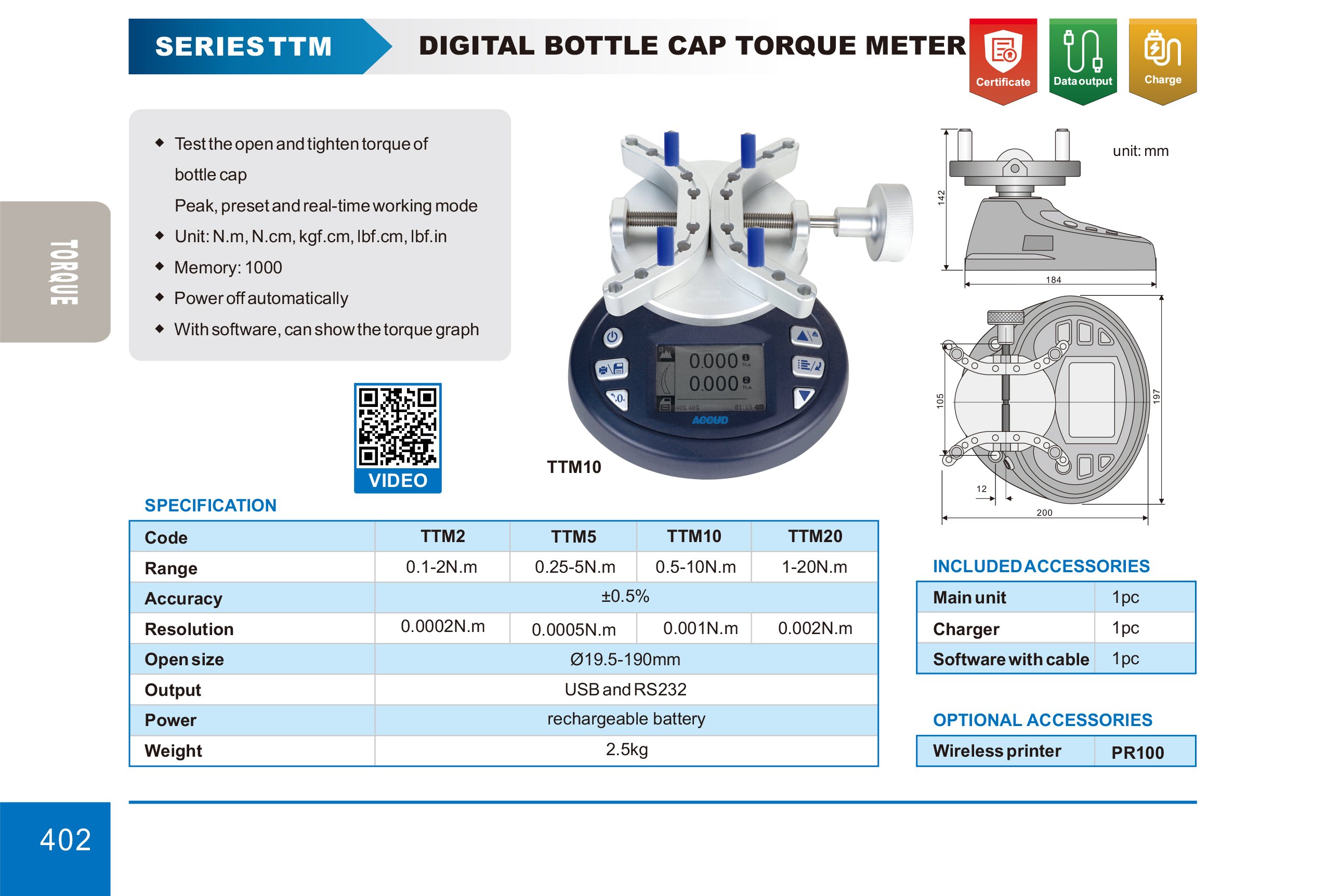 ACCUD TTM20 digitální zkoušečka utahovacího momentu 1-20N.m ( 0.002N.m )