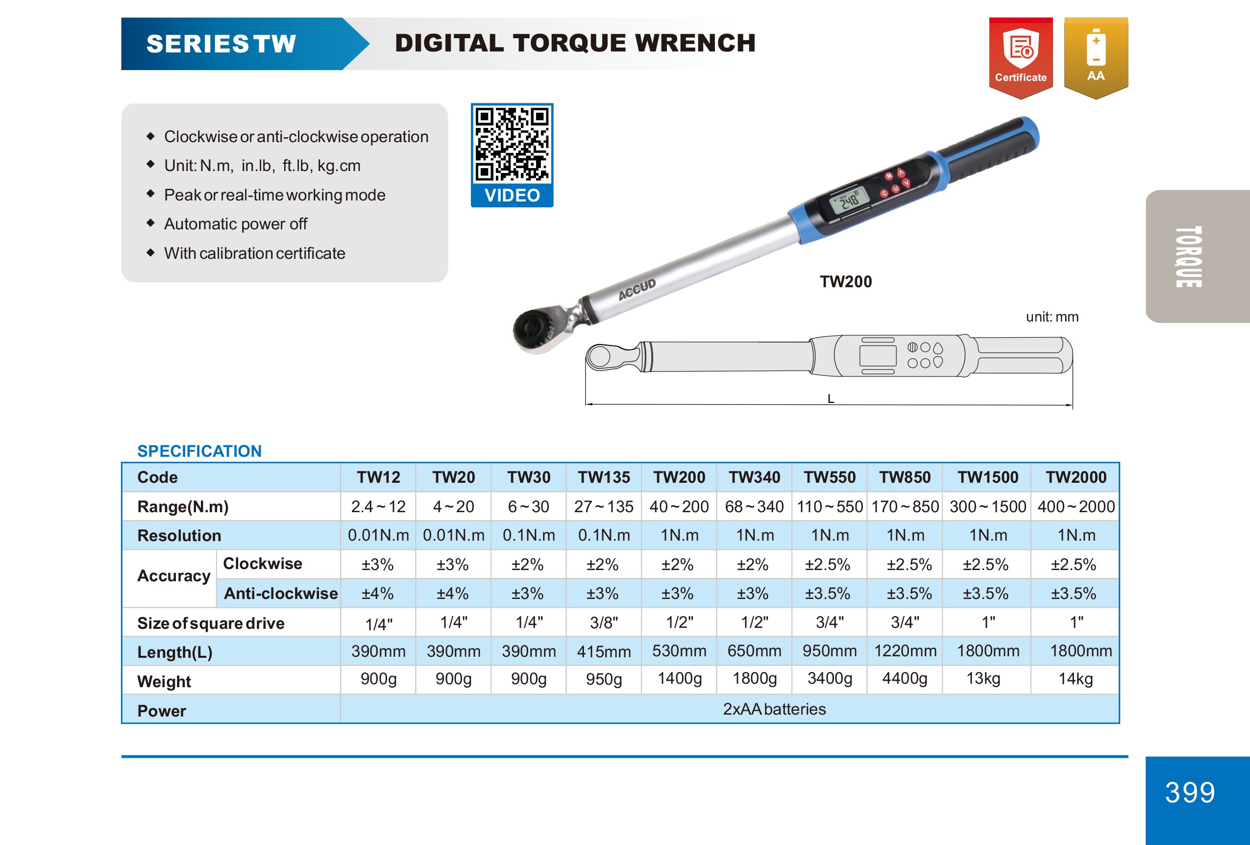 ACCUD TW340 digitální momentový klíč ( rozsah 68-340N.m )