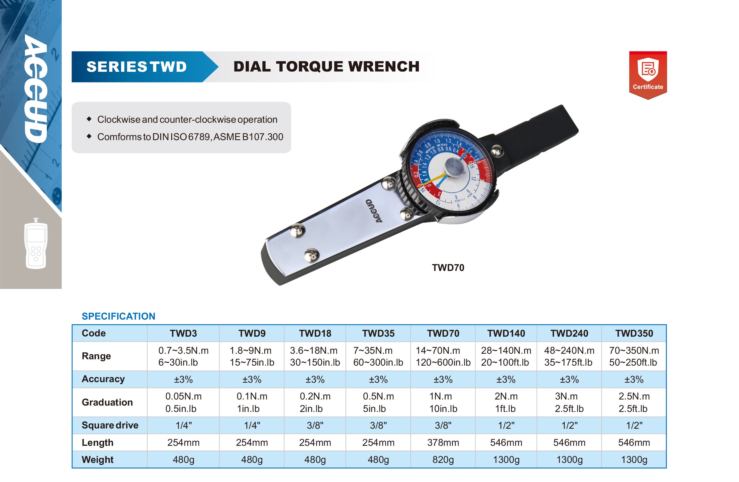 ACCUD TWD9 momentový klíč s číselníkovým úchylkoměrem rozsah 1.8-9N.m ( dělení 0.1N.m )