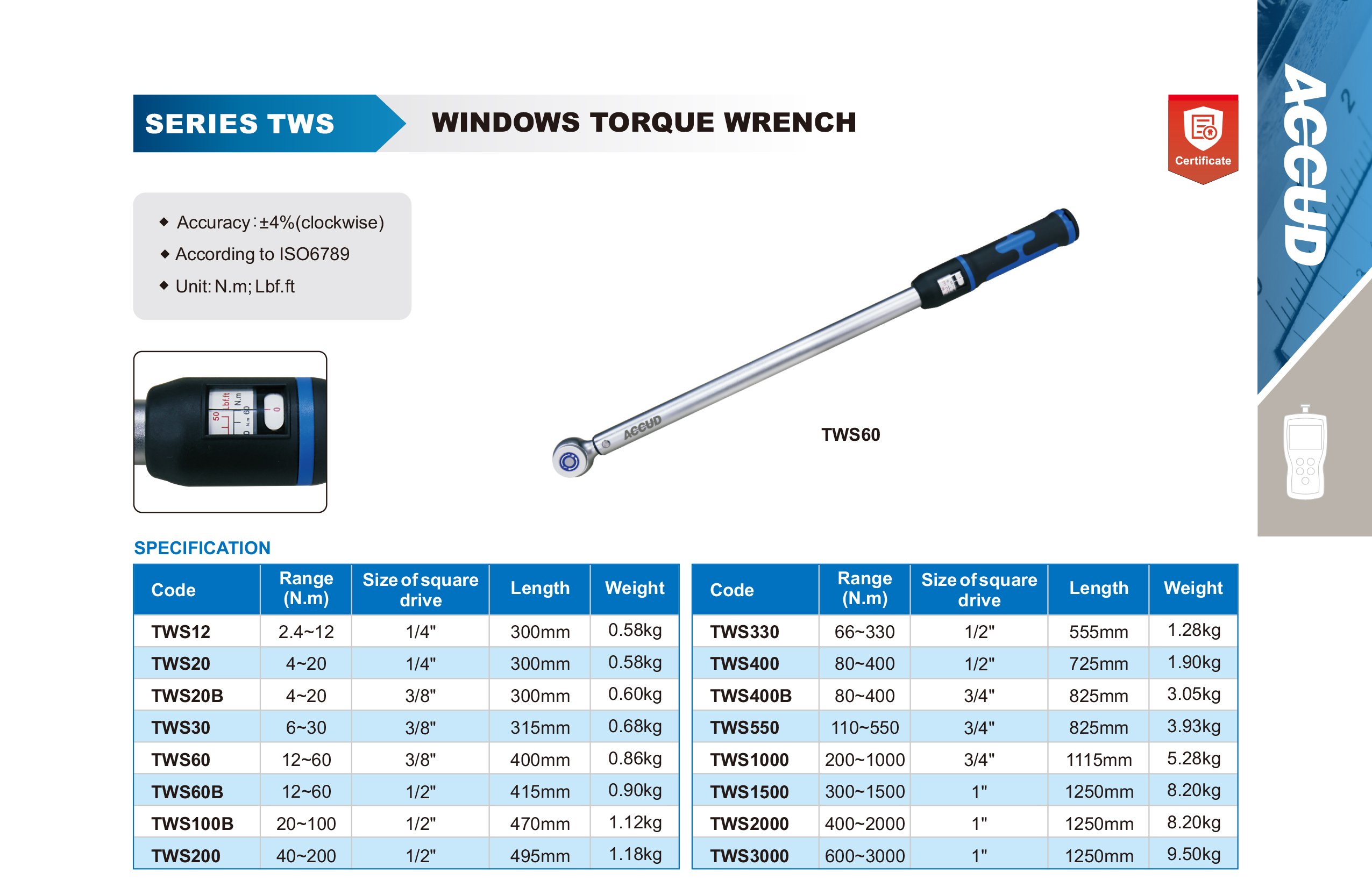 ACCUD TWS30 momentový klíč s plastovou rukojetí velikost připojovacího čtyřhranu 3/8" ( rozsah 6-30Nm )