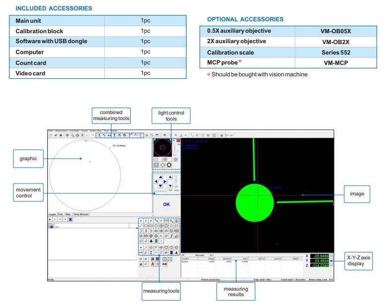 - Přesnost (X/Y osy): (2.2+L/200)µm Lis délka měření v mm
