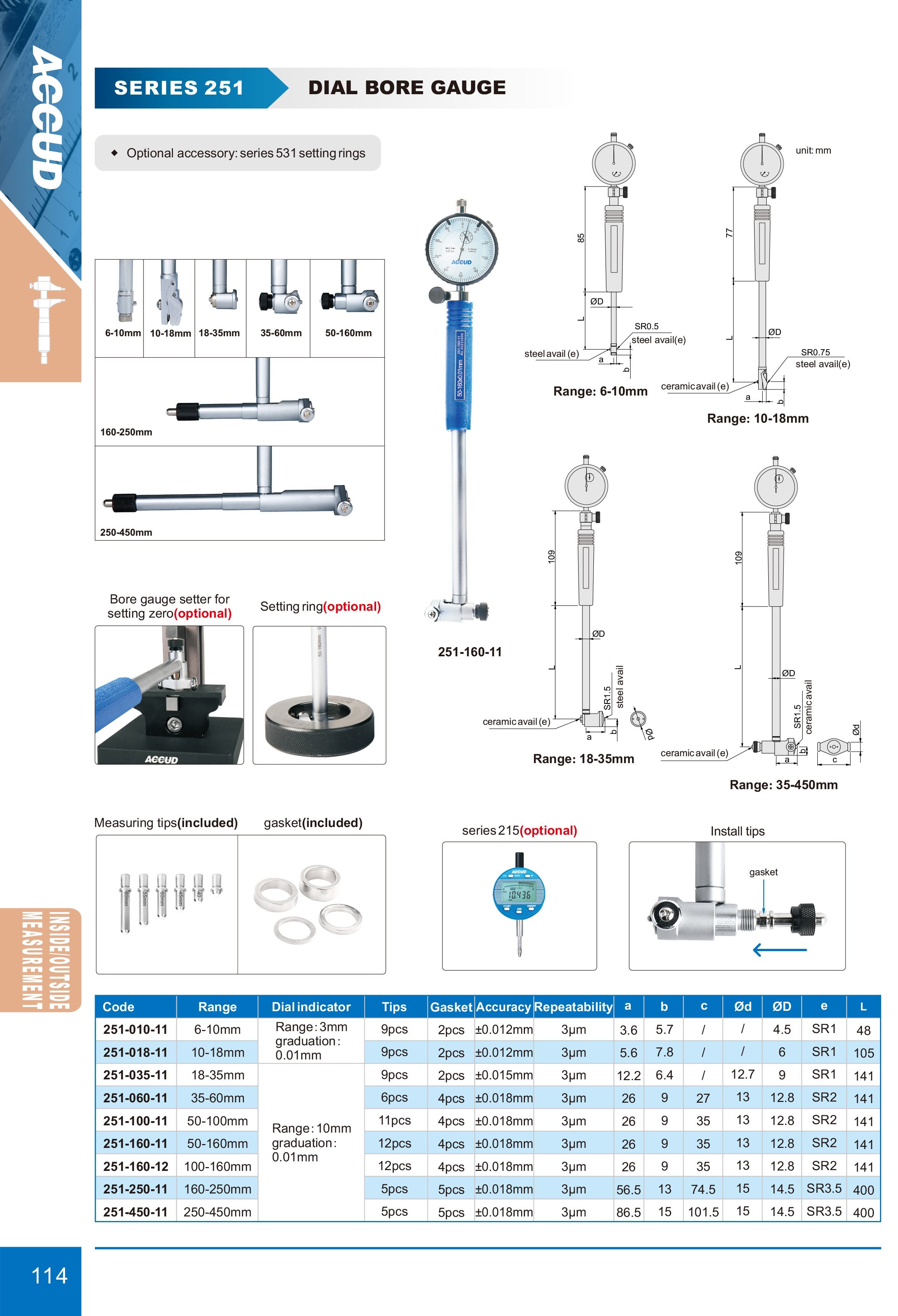 AKCE - ACCUD 251-010-11 dutinoměr s číselníkovým úchylkoměrem pro malé díry / 6-10mm / 0.01mm