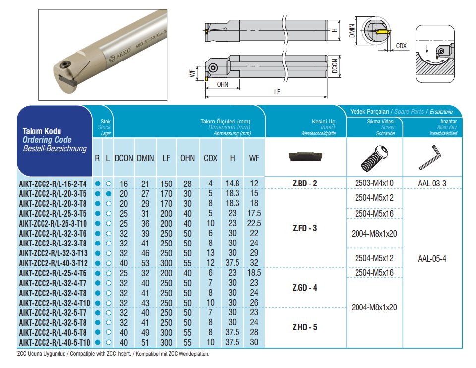 AKCE - Upichovací nůž vnitřní - levý 5mm, AKKO AIKT-ZCC2-L-40-5-T10