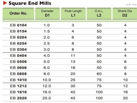 Čelní čtyřbřité frézy EB jsou určeny především k obrábění materiálů skupiny P ( oceli ) a K ( litiny ). Frézy jsou opatřeny oblíbeným povlakem ALTiN a slouží zejména k dokončovacím a středně-dokončovacím operacím v materiálech do 55HRC.