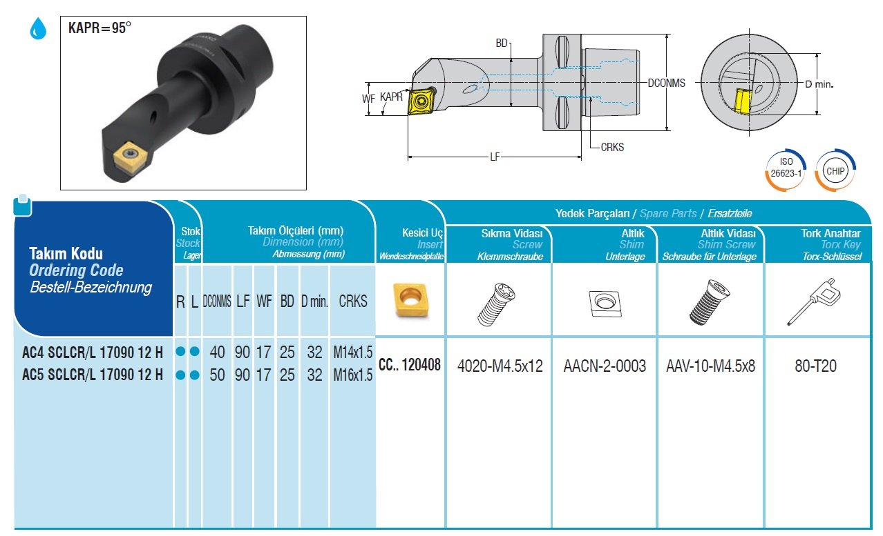 AKKO AC4 SCLCR 17090 12 H soustružnický držák vnitřní MONOBLOK CAPTO