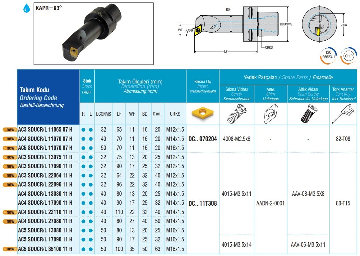 | Typ břitové destičky ISO soustružení | Pro VBD typu DC.T 11T3.. |