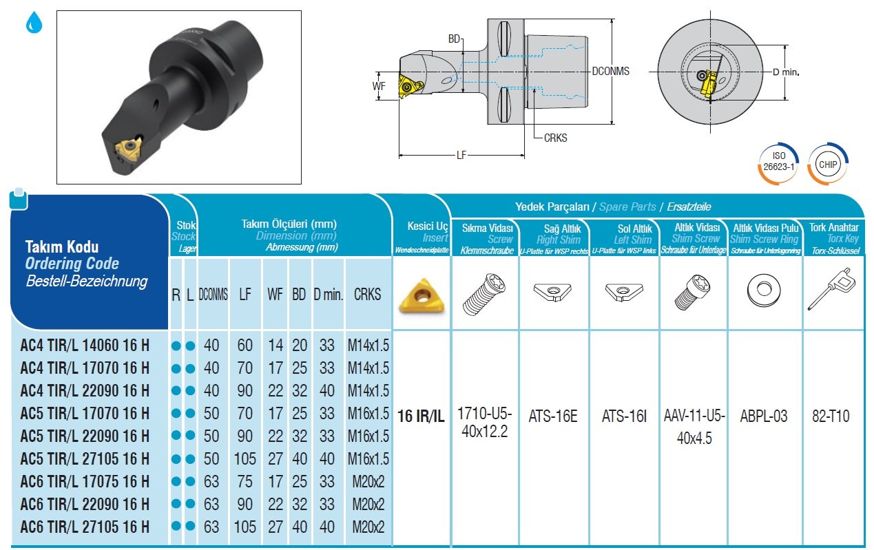 AKKO AC6 TIL 17075 16 H soustružnický držák závitovací vnitřní MONOBLOK CAPTO