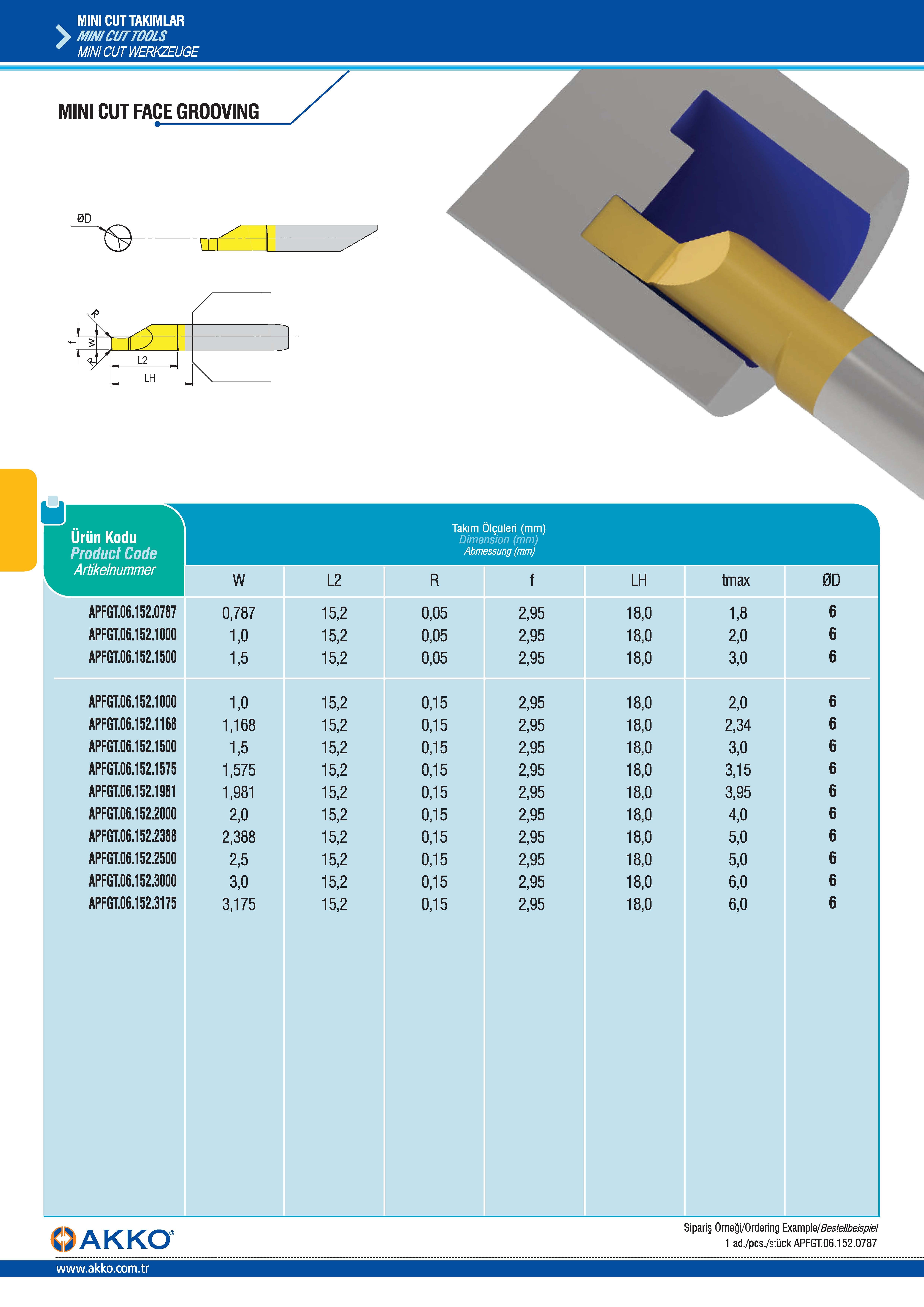 APFGT.06.152.3000 MINI čelní zapichovací nůž d6, šířka zápichu 3,0mm