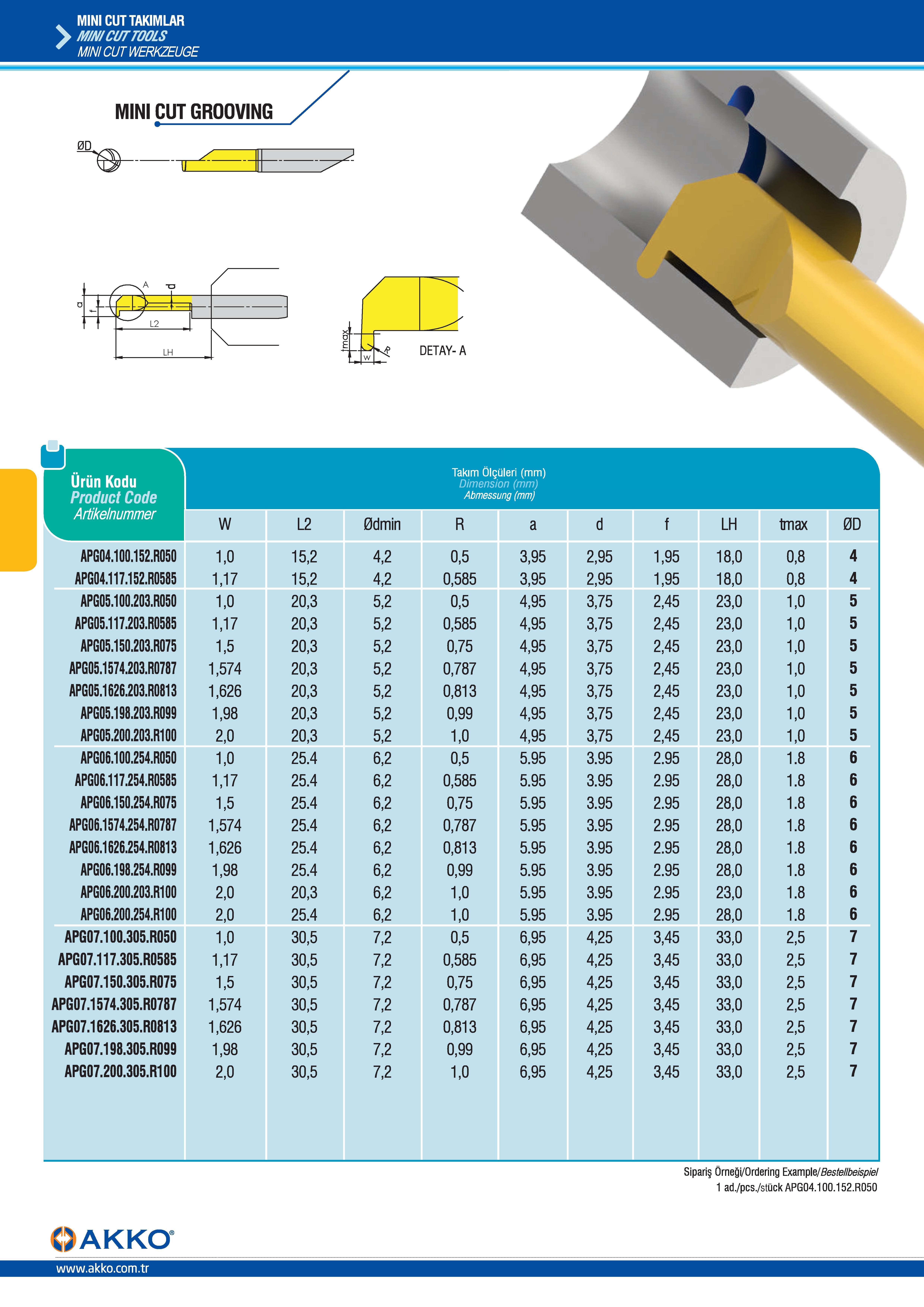 APG05.1626.203.R0813 nůž MINI zapichovací šíře 1,626mm s rádiusem R0,813, D.min. 5,2mm