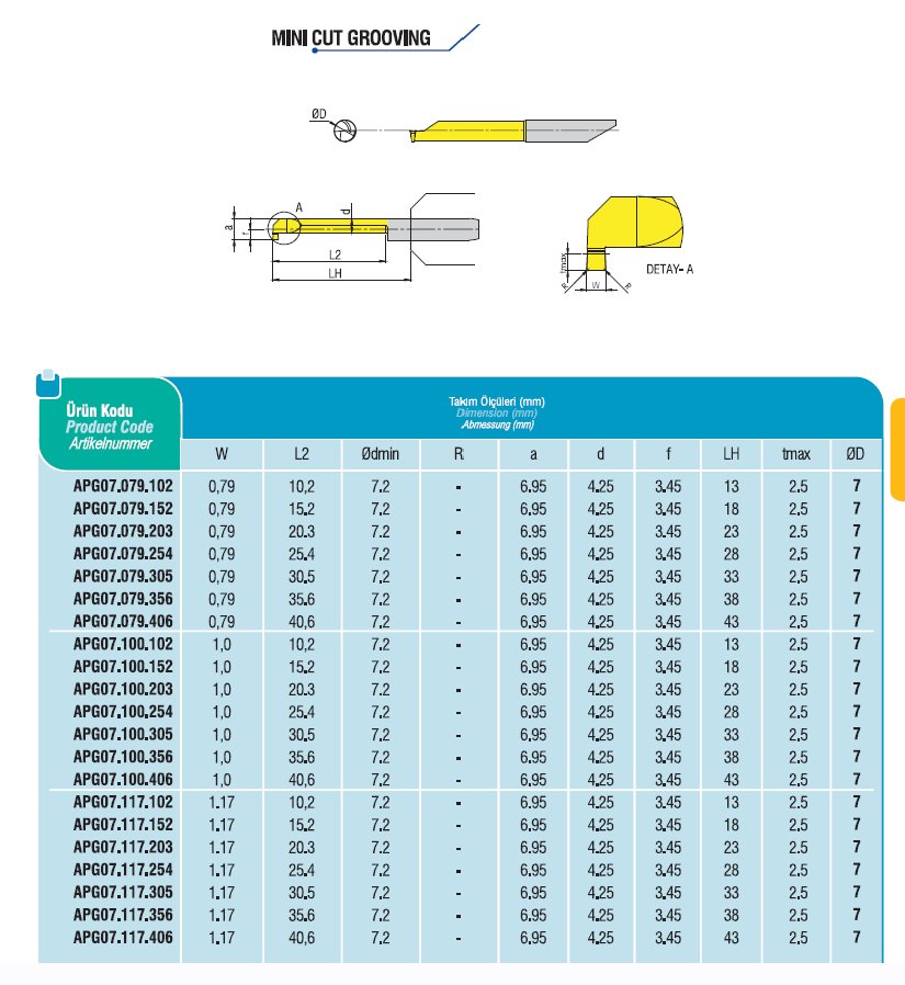 APG07.157.305 nůž MINI zapichovací šíře 1,57mm, L 30,5mm, D.min. 7,2mm