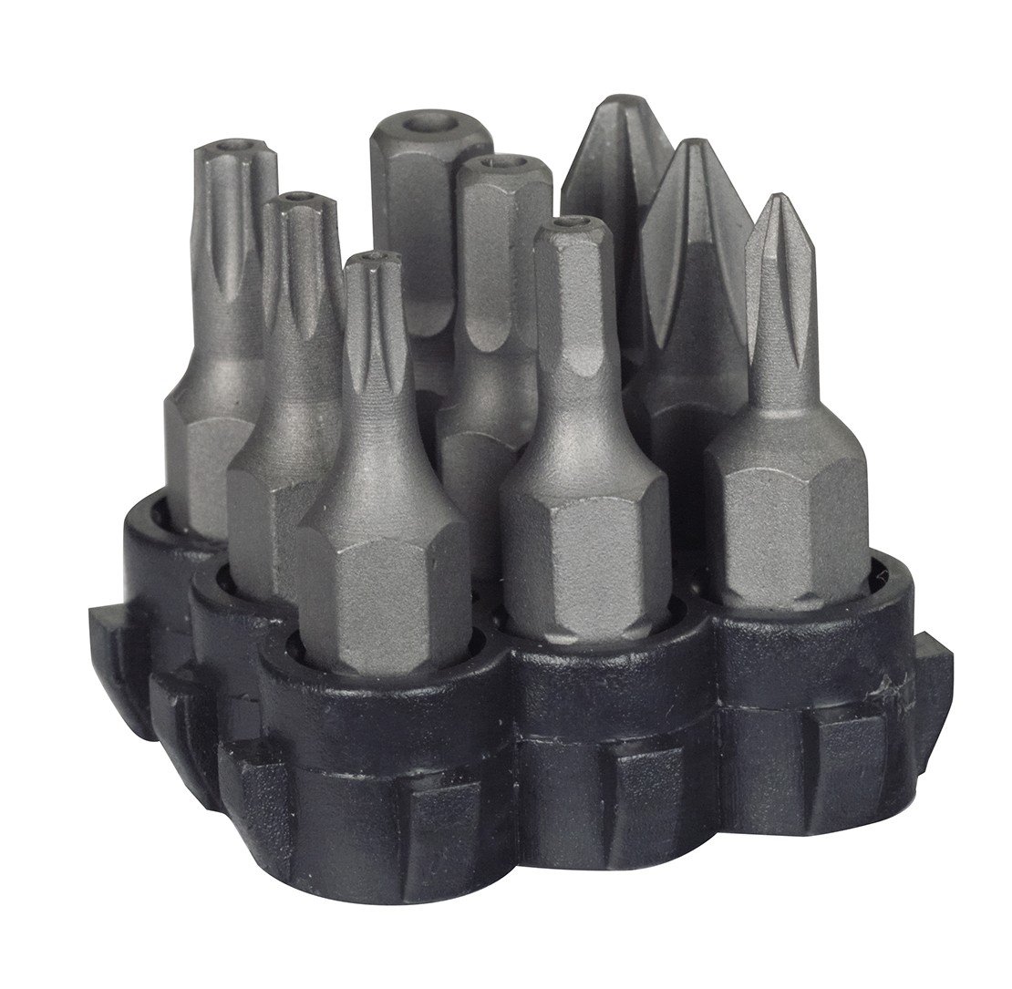 - 9ks standardních 1/4" bitů v průmyslové kvalitě ve velikostech PH 0 – 1 – 2, HX 3 – 4 – 5, TX 10 – 15 – 20