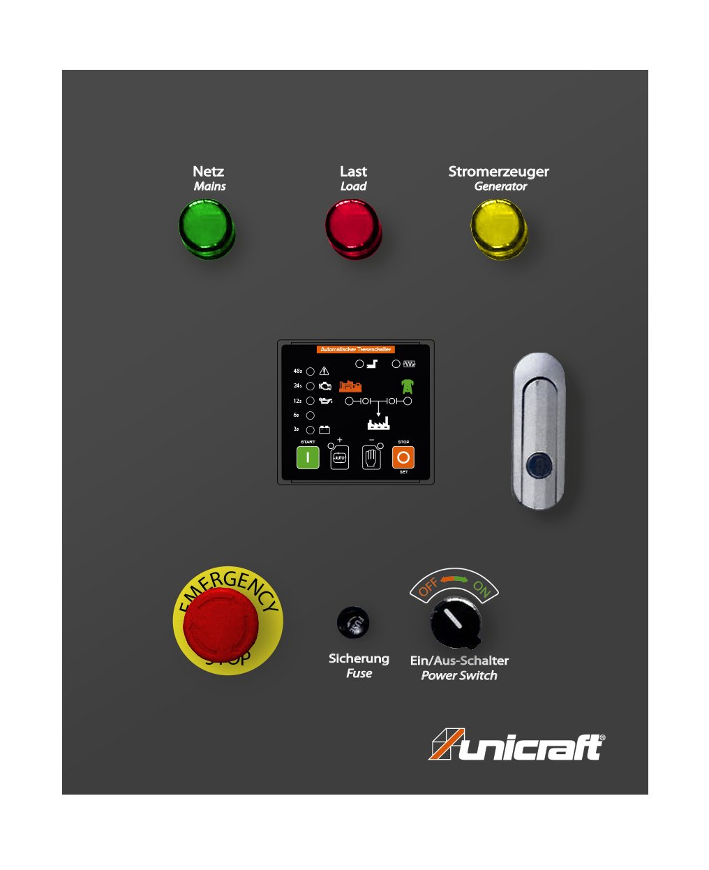 Při výpadku proudu spínač do 30 sekund automaticky spustí elektrocentráluPokud je napájení ze sítě znovu obnoveno elektrocentrála se do 5 sekund automaticky vypneManuální režim – elektrocentrála se nestartuje automaticky (pouze manuálně) Více