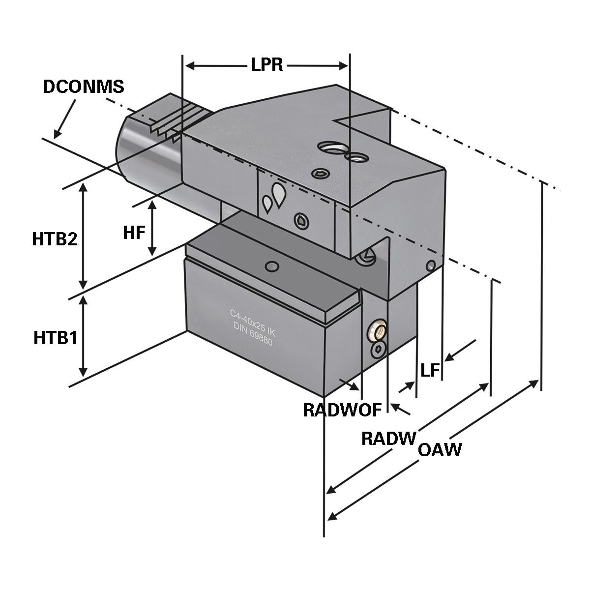 Axiální nástrojový držák – provedení C4 podle DIN ISO 10889 [DIN 69880] – VDI, určený pro nástroje s vnitřním chlazením, primárně pro vnější a čelní obrábění, s přesným přívodem chladiva zajišťujícím efektivní odvod třísky, spolehlivý provoz a vyšší produktivitu i při hlubokých drážkovacích operacích.