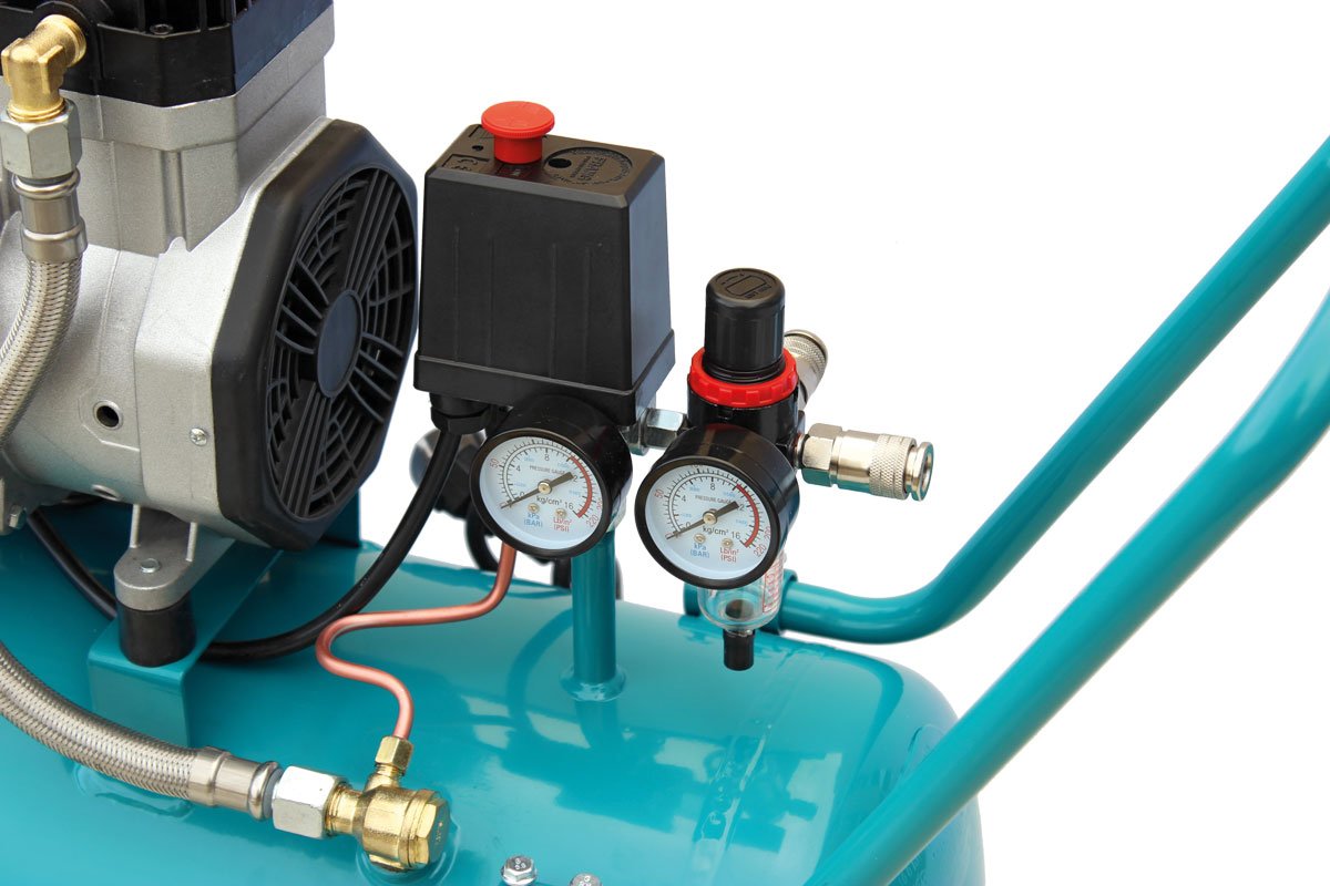 Tichý bezolejový kompresor pro domácí a dílenské použití.