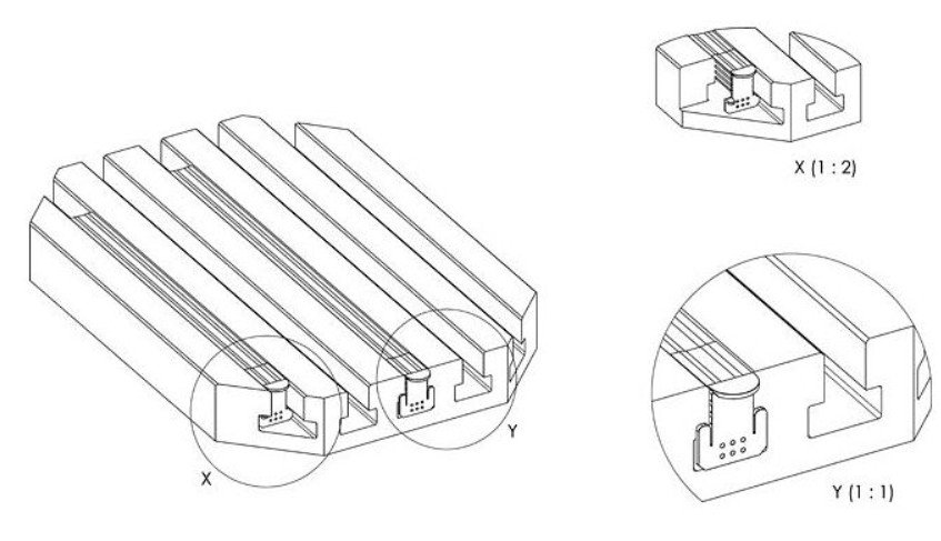To je obzvláště výhodné pro stoly s T-drážkami u pětiosých obráběcích strojů.