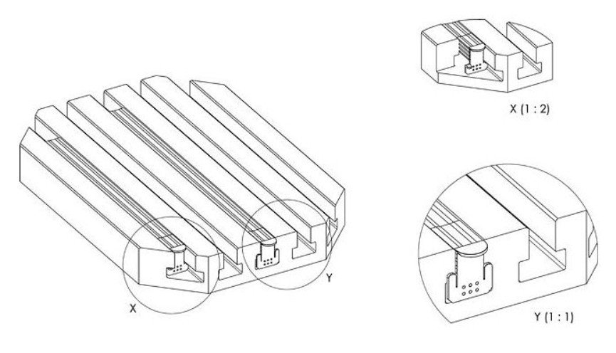 To je obzvláště výhodné pro stoly s T-drážkami u pětiosých obráběcích strojů.