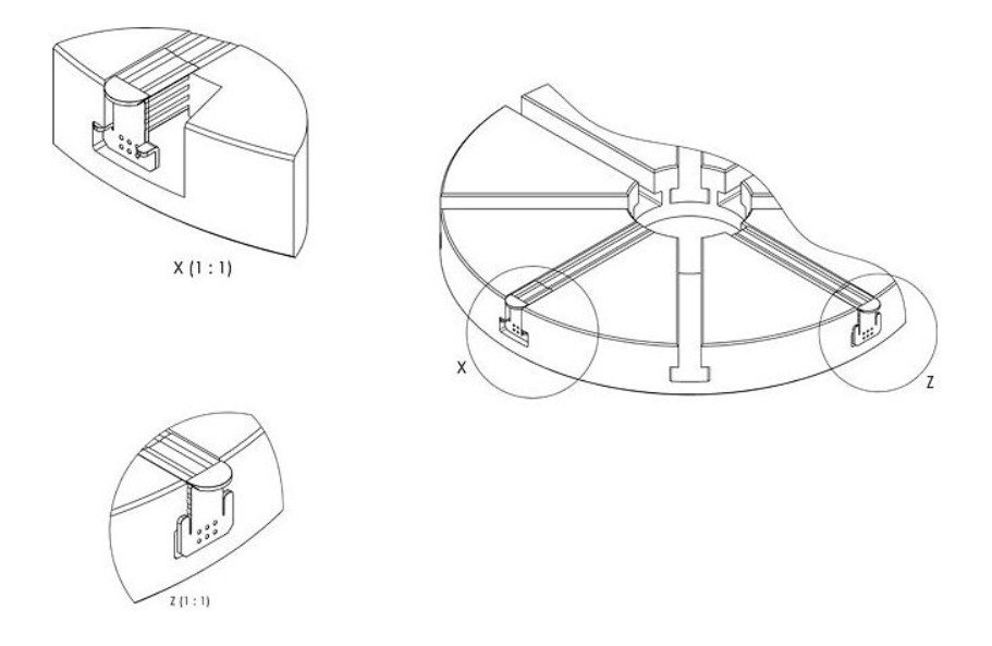 - Otvory a zkosení umožňují volný průtok chladicí kapaliny
