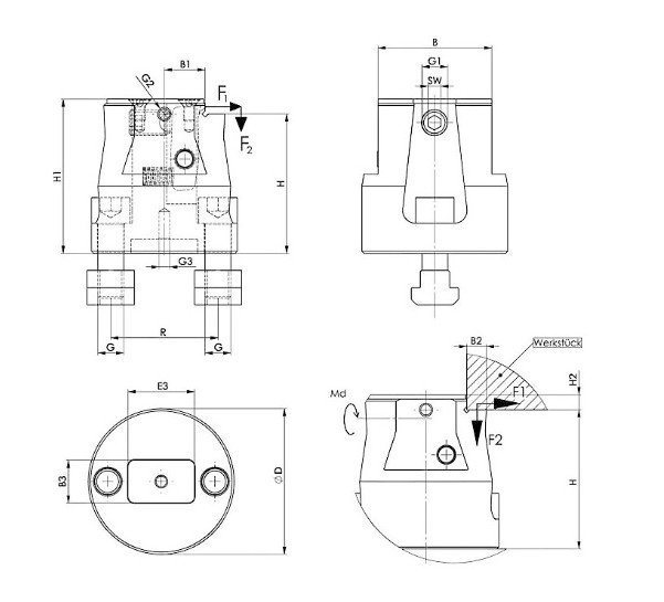 Boční upínač se dodává kompletní s montážní sadou a upevňuje se šrouby pevnostní třídy 10.9.Použití plochého posuvného bloku č. 6322A nebo 6322B umožňuje přesné umístění… Více