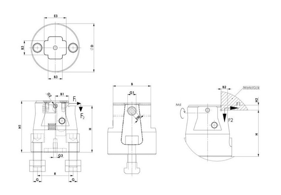 Boční upínač se dodává kompletní s montážní sadou a upevňuje se šrouby pevnostní třídy 10.9.Použití plochého posuvného bloku č. 6322A nebo 6322B umožňuje přesné umístění… Více