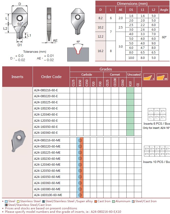 | Druh obráběného materiálu | Litina, Nerez, Ocel |
