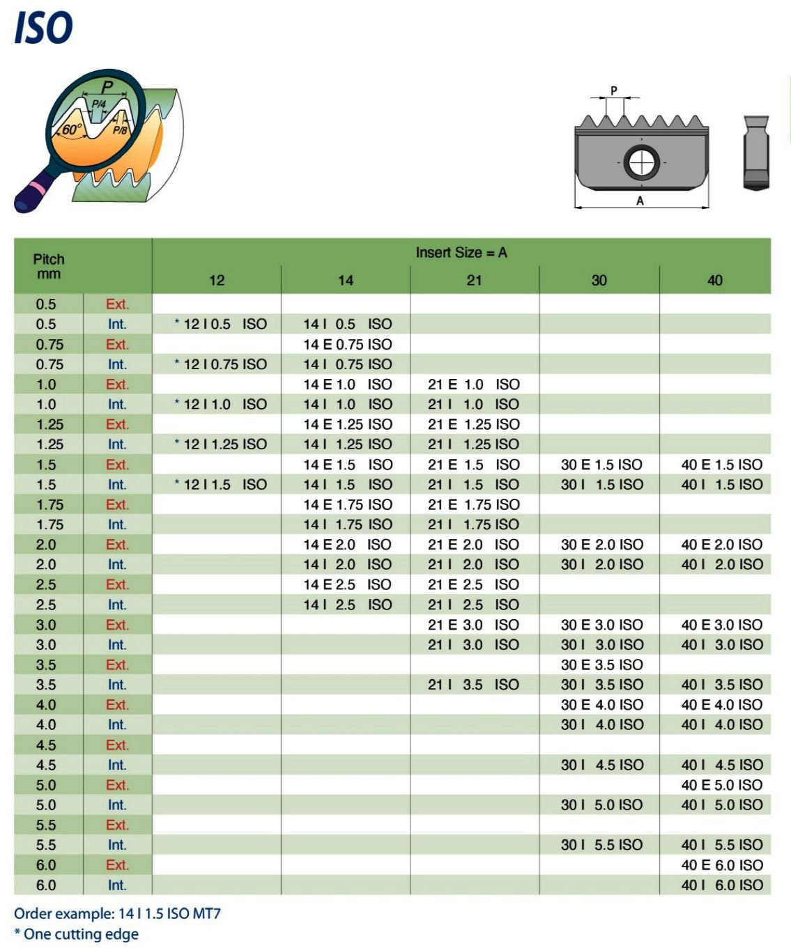 Destičky jsou oboustranné, tj. mají dvě řezné hrany (kromě BSPT / NPT / NPTF / American Buttress / API RD) U mnoha profilů závitů může stejná břitová destička obrábět vnitřní i vnější aplikace (kromě ISO / UN / NPSM / UNJ / Acme)