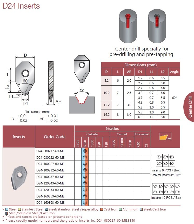 Břitová destička D24-100237-60-ME,B350 pro středící tvrtáky TU/TU1
