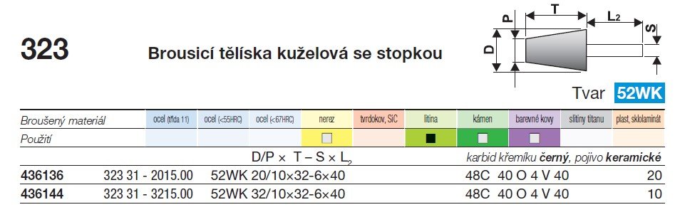 Brousící tělísko kuželové se stopkou BRUSIVO 436144 /32331 3215.0015/ - T52 - 32/10x32-6x40 mm