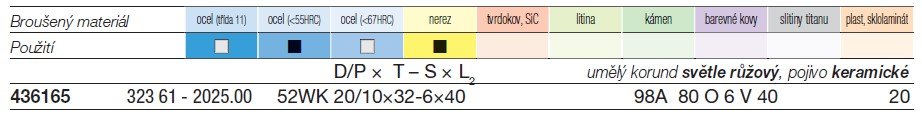 Brousící tělísko kuželové se stopkou BRUSIVO 436165 /32361 2025.0015/ - T52 - 20/10x32-6x40 mm