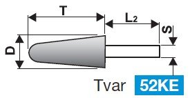 Brousící tělísko kuželové zaoblené se stopkou BRUSIVO 436181 /32551 3229.0015/ - T52 - 32x40-6x40 mm R6