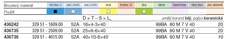 Brousící tělísko oboustranně zkosené se stopkou BRUSIVO 436736 /32951 4015.0015/ - T52 - 40x10-6x40 mm