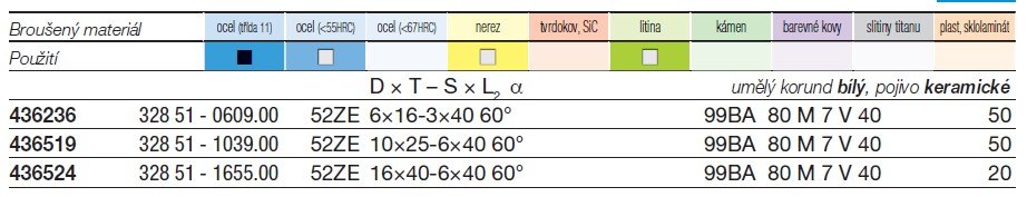 Brousící tělísko válcové kuželové se stopkou BRUSIVO 436524 /32851 1655.0015/ - T52 - 16x40-6x40 mm 60°