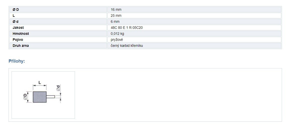 Brousící tělísko válcové se stopkou BRUSIVO 413284 /32133 1660.0015/ - T52 - 16x25-6x40 mm