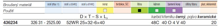 Brousící tělísko válcové zaoblené se stopkou BRUSIVO 436234 /32631 2525.0015/ - T52 - 25x32-6x40 mm