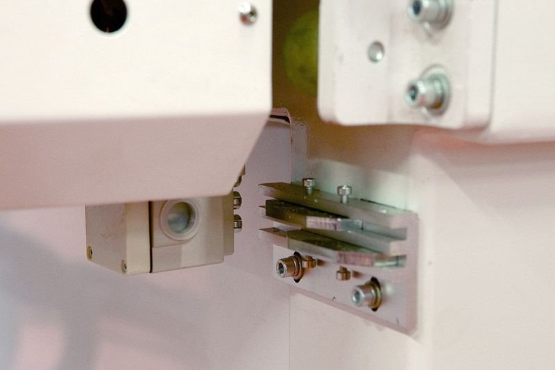 - Volitelně lze stroj dovybavit fixírkou, pneumatickými dorazy či zvýšeným průchodem mezi portálem a stolem