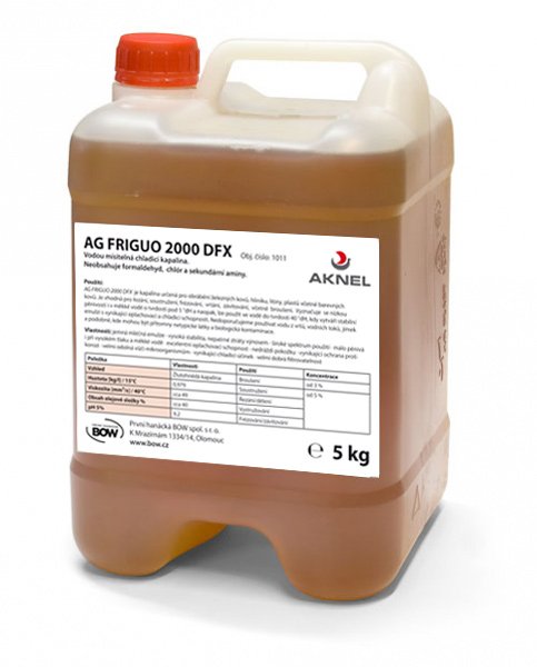 - AG FRIGUO 2000 DFX je polosyntetická, vodou mísitelná chladicí kapalina se středně vysokým obsahem minerálního oleje, která vytváří stabilní emulzi v širokém spektru tvrdosti a složení běžných vod s extrémně dlouhou životností