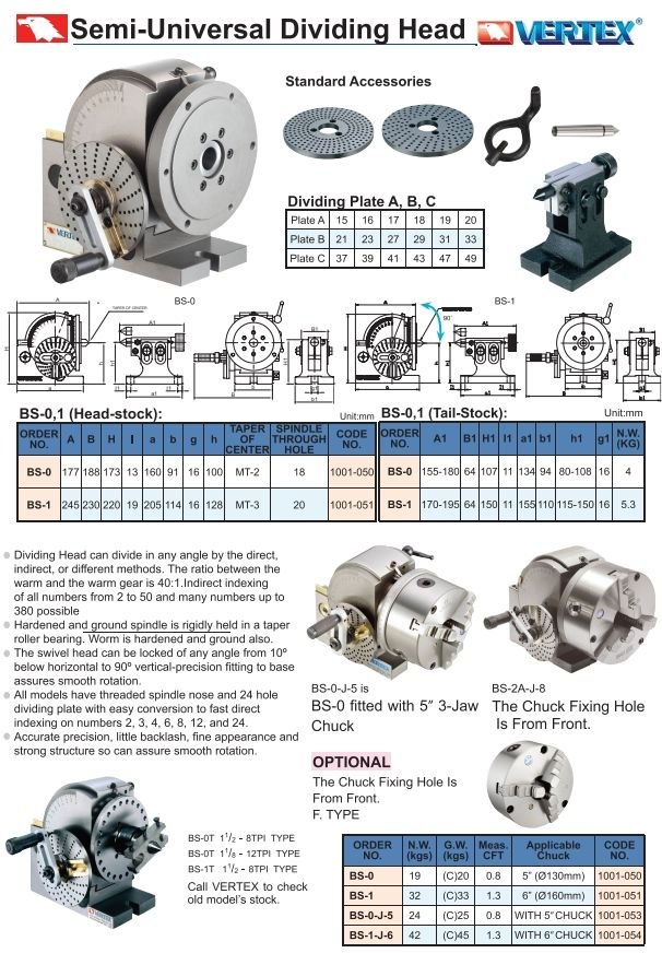 Univerzální dělicí hlava BS-2A-J-6 pro nepřímé dělení Včetně 3-čelisťového sklíčidla VSC-6A Rozsah upínání vnější Ø3 - Ø160 Rozsah upínání vnitřní Ø48 - Ø150 Výška osy 134mm Příslušenství - viz foto (koník TS-2, dělící kotouče, příruba, středící hrot MT-4,..) S dělícími kotouči je… Více