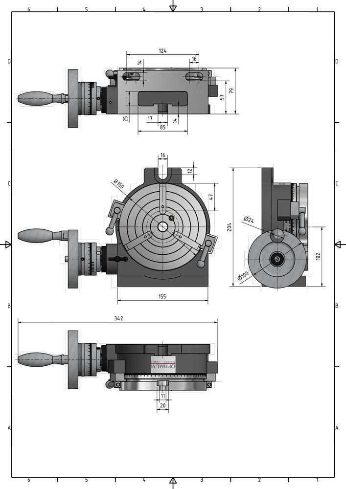Šnek kalený a broušenýPřevodový poměr 90 : 1Pracovní stůl se stupnicí 360°1 otáčka ručního kolečka jsou 4° přestaveníDílek stupnice na ručním kolečku 2”Možnost dělení prostřednictvím ručního kolečka s noniusem Více