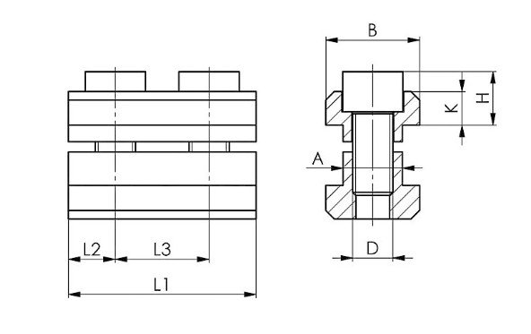 Doraz drážky, zušlechtěný a broušený. Určen pro podélnou i příčnou funkci, nízká celková výška umožňuje použití u plochých obrobků.