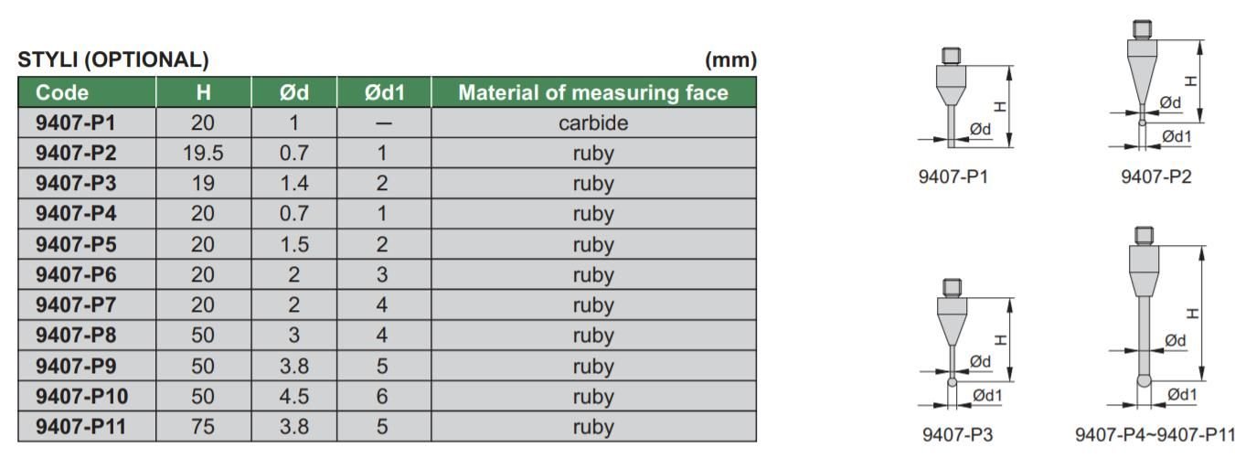 Dotek 20x3mm s rubínovou kuličkou INSIZE 9407-P6 pro sondy 9407