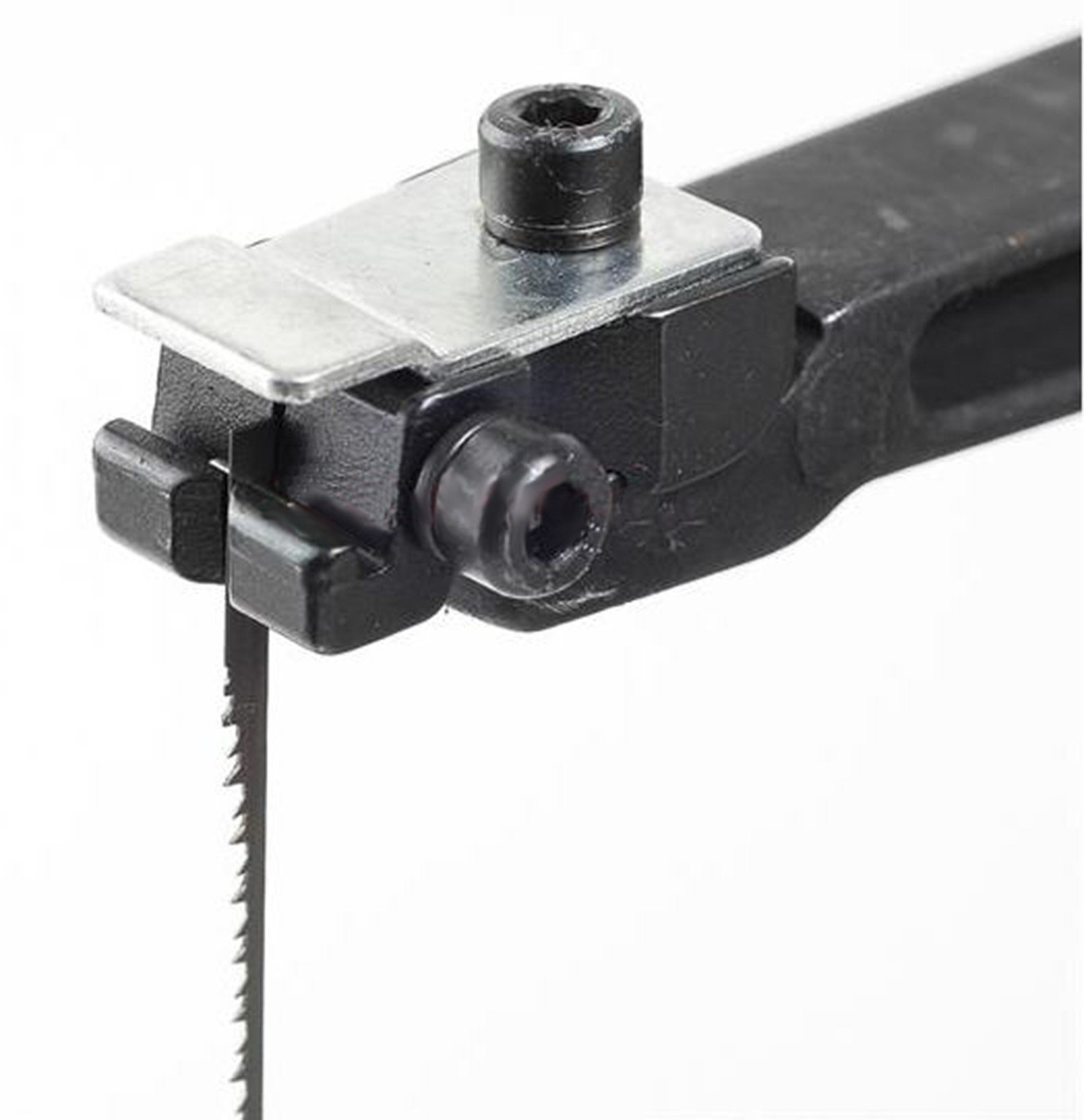 Vhodné pro řezání plexiskla, sklovláknitých desek, pěnových materiálů, gumy, kůže a korku. Úzké rameno pily z hliníkového tlakového odlitku pro lepší viditelnost při řezání.