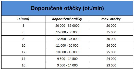 • Pro frézy menších rozměrů použijte vyšší otáčky dle doporučení