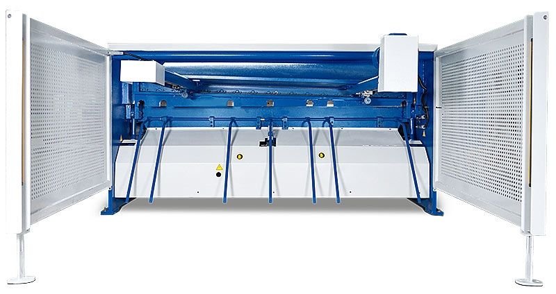 Robustní elektrické nůžky na plech se svařovanou konstrukcí a programovatelným zadním dorazem. Pracovní šířka 2550 mm.