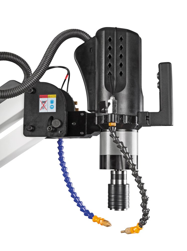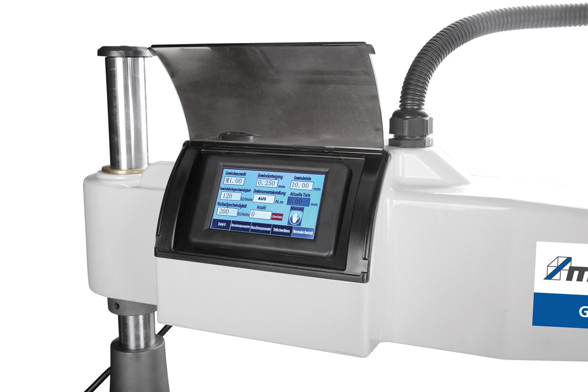 Závitořez s volně pohyblivým ramenem a nastavením parametrů pomocí vestavěného displeje. Navíc s funkcí přimazávání a ofukování.