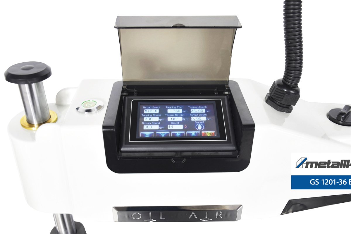 Závitořez s volně pohyblivým ramenem a nastavením parametrů pomocí vestavěného displeje. Navíc s funkcí přimazávání a ofukování.