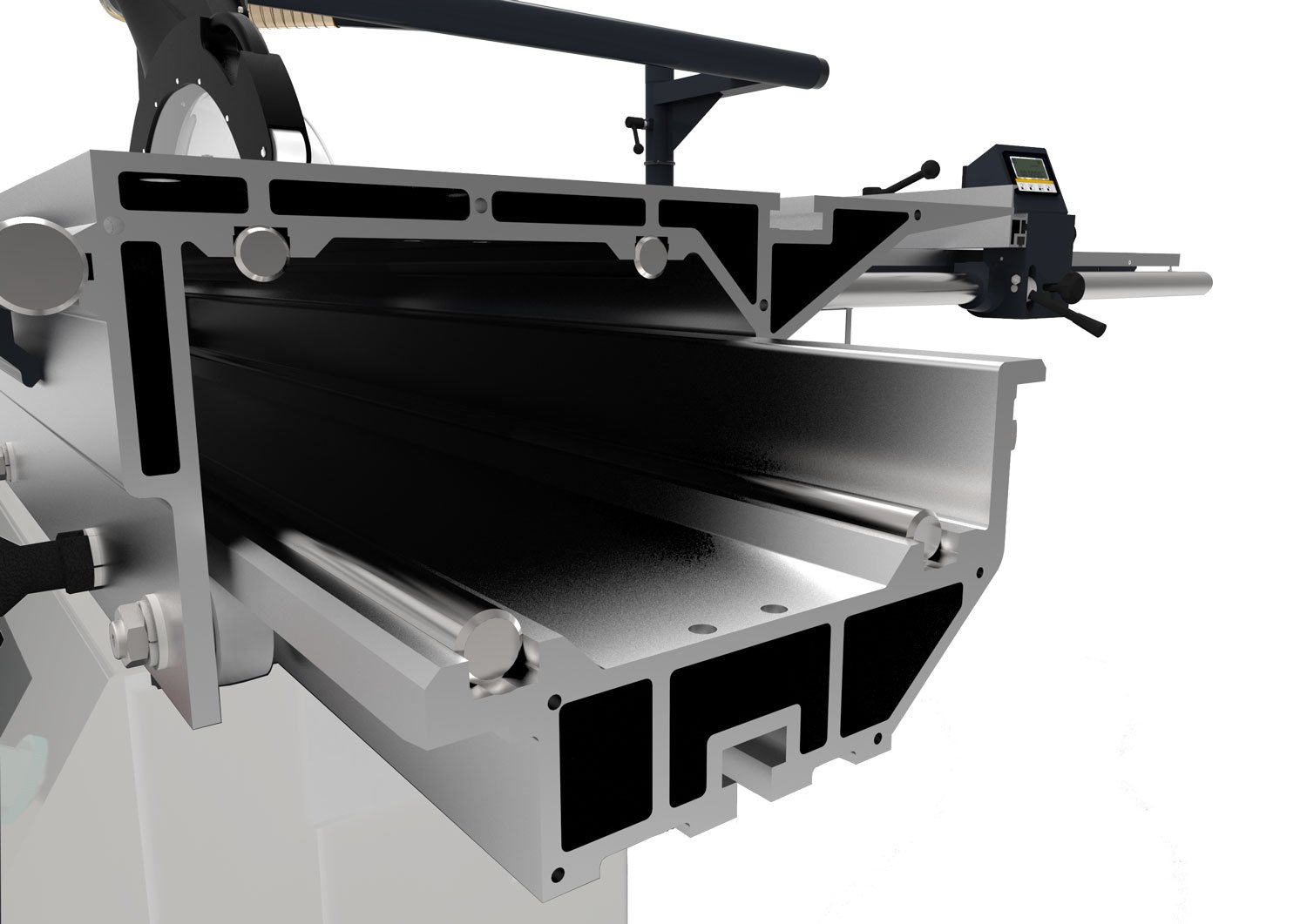 - Standardně dodávané prodloužení stolu ze silného ocelového plechu