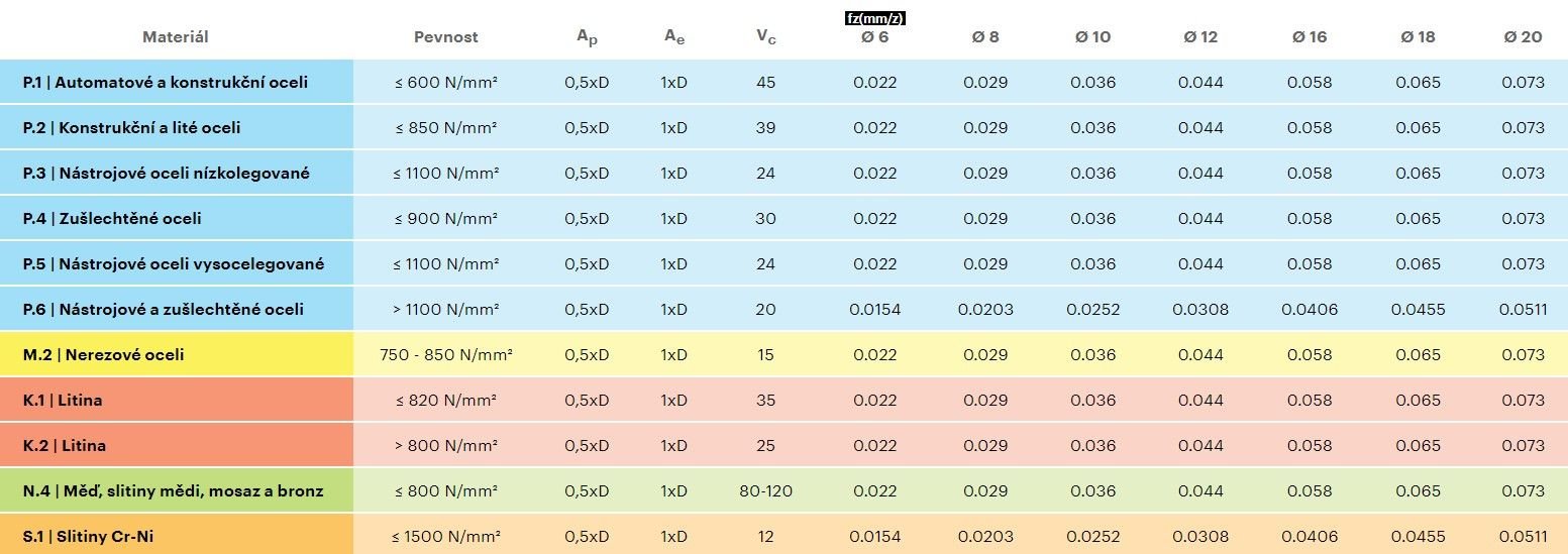 • Vysoce výkonná ocel s dobrou houževnatostí a výbornou teplotní odolností. Vhodná především pro frézování vysoce pevných materiálů, austenitických ocelí, ocelí pro tváření za tepla atd.