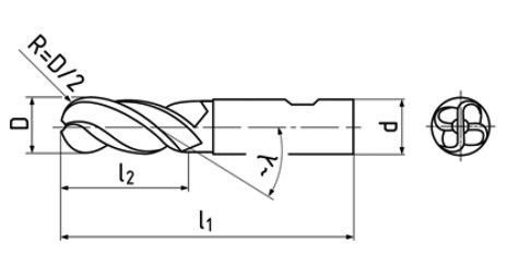 Nástroje pro frézování. Frézu je možno dodat s povlakem Tin, TiCN, TiAlN - na poptávku. Frézy kopírovací krátké, s půlkruhovými břity, ploška weldon, vyrobené z rychlořezné oceli HSS Co8, dle normy ~DIN 1889, vhodné na šlichtování, drážkování a hrubování, pro obrábění ocelí, nerezových ocelí,litiny, slitin chomu, mědi a slitin mědi.