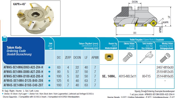 Fréza nástrčná 45° AFM45-SE14M4-D100-A32-Z05-H